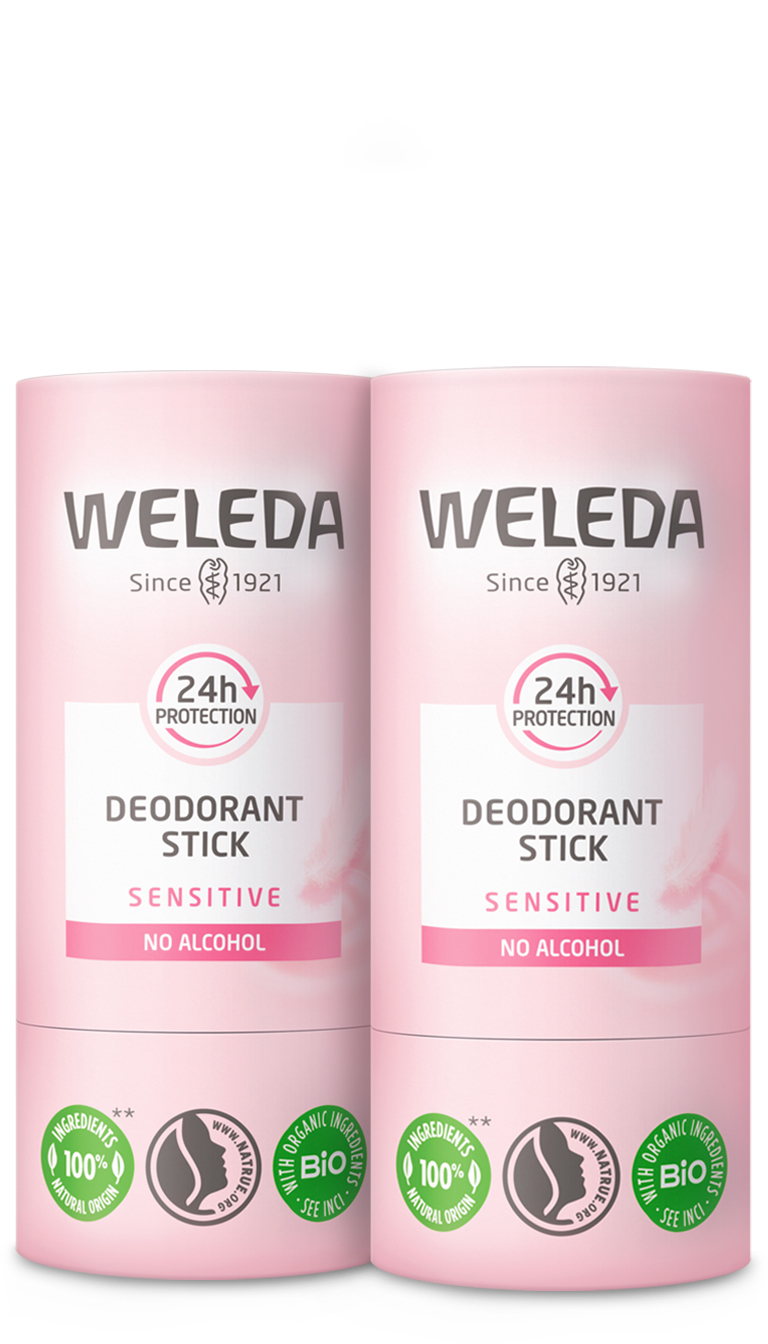 This duo of two Weleda Sensitive Deodorant Sticks offers gentle, natural deodorant care made for sensitive skin.
