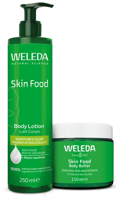 Weleda's Skin Food Body Lotion pampers the skin intensively with moisture and leaves a radiant glow.